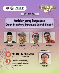 Geopix juga menggelar talkshow “Koridor yang Terputus: Gajah Sumatera, Tanggung Jawab Siapa?” sebagai ruang dialog lintas perspektif antara jurnalis, peneliti, pegiat konservasi, dan publik. Diskusi ini membedah akar persoalan kerusakan habitat, peran industri dan kebijakan, serta pentingnya jurnalisme lingkungan dalam mengawal isu konservasi. Geopix ingin mendorong lahirnya kesadaran bersama bahwa penyelamatan gajah bukan hanya isu satwa liar, tetapi juga tentang masa depan ekosistem dan tanggung jawab bersama.